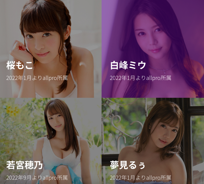 為什麼?現在包括桜もこ(櫻萌子)、安位カヲル(安位薰)、夢見るぅ(夢見露)以及白峰ミウ(白峰美羽)都被放在經紀公司AllPro的官網上,我曾經告訴大家,那是因為AllPro現在管理女優的頭和三上悠亜的原經紀人「青木亮」有師徒關係,所以雙方用業務提攜的方式合作,將三上以外的女優交給AllPro「照顧」:但問題來了,AllPro自己有沒有女優呢?有的,他們有小野六花、有藤森里穂、櫻茉日及流川夕四位片商的專屬女優要照顧,還有像若宮穂乃、松本菜奈実以及佐知子這樣或移籍或自身發掘的企劃女優要推,安位等人就很可憐,雖然還是可以找原事務所的人敲他們行程,但一來你不知道原事務所的人有沒有在管他們死活,二來AllPro有自己的人要照顧,她們不尷尬我都覺得尷尬了⋯