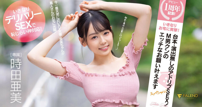 於是Faleno Star替時田亜美企劃了「デビュー1周年記念!いきなりお宅に突撃!台本・演出無しのアドリブSEX!M男クンのエッチなお願い叶えますスッペシャル!」:坦白說我完全沒想到會有這支作品,因為Faleno Star之前女優出道滿週年就是一支精選輯交代,想不到時田亜美竟然擁有特別企劃的待遇: