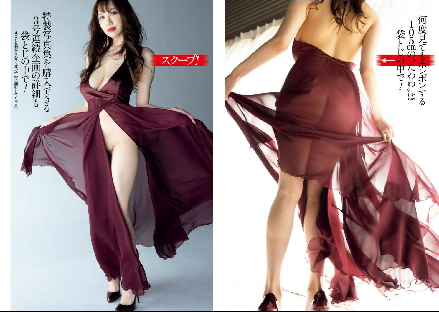 這是她為這本雜誌拍攝的2023カレンダー(2023年月曆),隨書還附贈650×253mm的超大海報,想要收藏安齋的朋友一定要買下這本雜誌;另外,請大家再看看封面的右上角,有沒有另一個B105(胸圍)的凪ひかる(凪光)?兩位同樣胸圍壯觀J罩杯的神乳在同一本雜誌登場,除了顯示8MAN這家經紀公司和週刊ポスト(週刊Post)關係真的很好,還有,這家事務所真的是好強,是超強的乳香世家啊〜