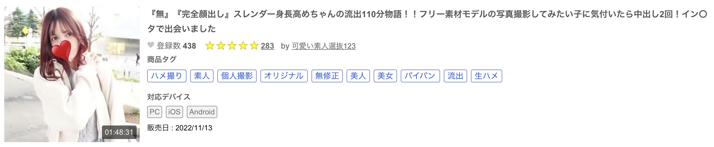 這是才剛發片的作品「『無』『完全顔出し』スレンダー身長高めちゃんの流出110分物語!!フリー素材モデルの写真撮影してみたい子に気付いたら中出し2回!イン〇タで出会いました」(FC2-PPV-3127344),賣家除了告訴我們演出的女優會露臉給你看外也提到她是個身材苗條高挑的模特兒,原本來拍寫真的她很自然地和賣家發生了性關係,天乾物燥不宜用套,兩發都是中出!