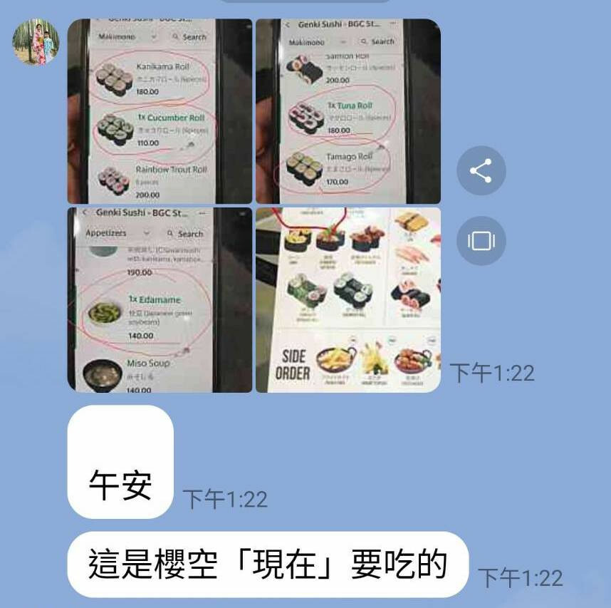 馬上調她的菜單,結果不看還好,一看我真是嚇了一跳;午餐除了每餐都要吃的毛豆外,她另外點了超過30個壽司;到了晚餐,原本她很客氣地只吃一份咖哩飯,但後來她愈想愈不對,一直追加一直追加,最後變成這個樣子: