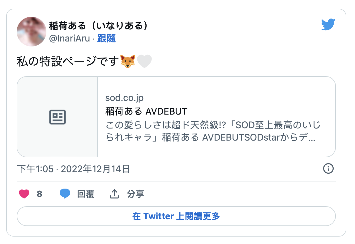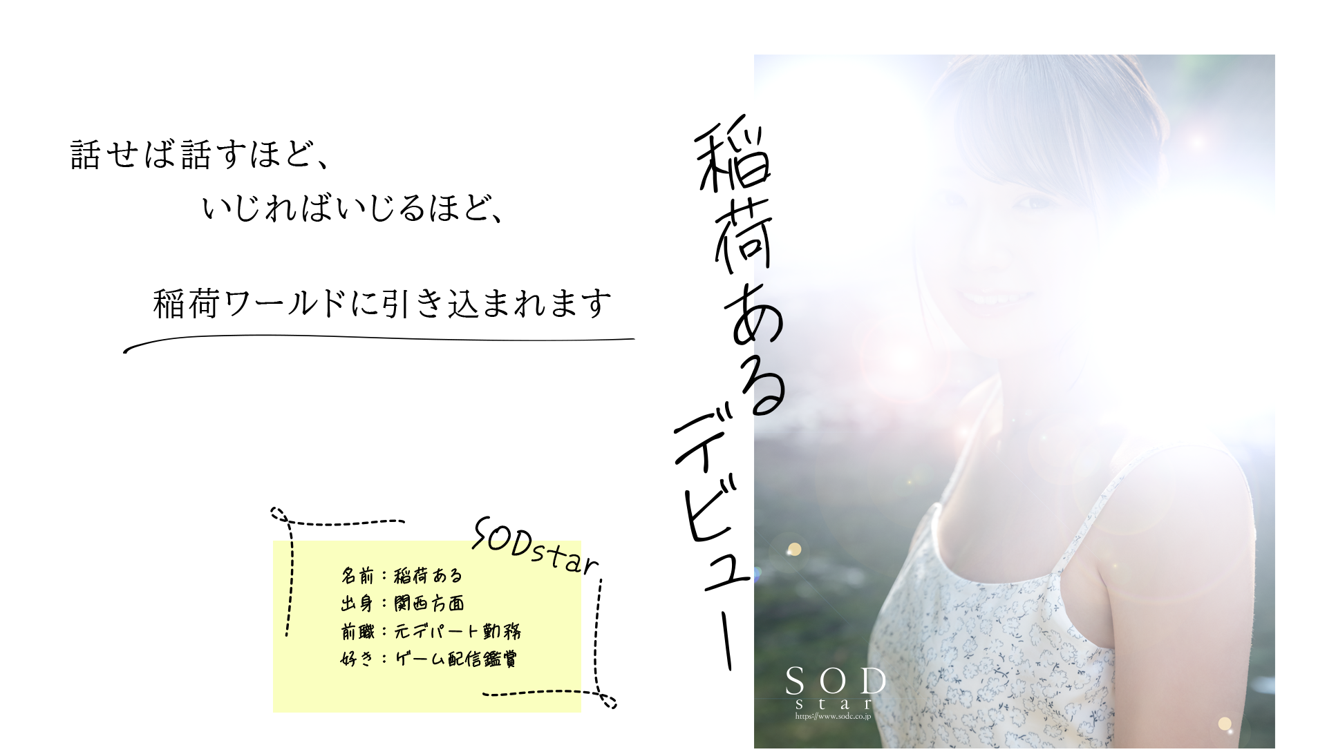 之前一個多月沒更新社群的「多香良」、在社群自我介紹拿掉SOD STAR專屬的「宮島めい(宮島芽衣)」狀況都不太對勁,而SOD也在官網公布了新鮮的肉體ー那就是之前在百貨公司上班的稲荷ある(稻荷步):