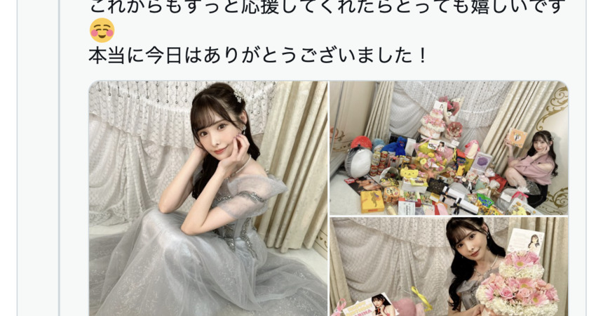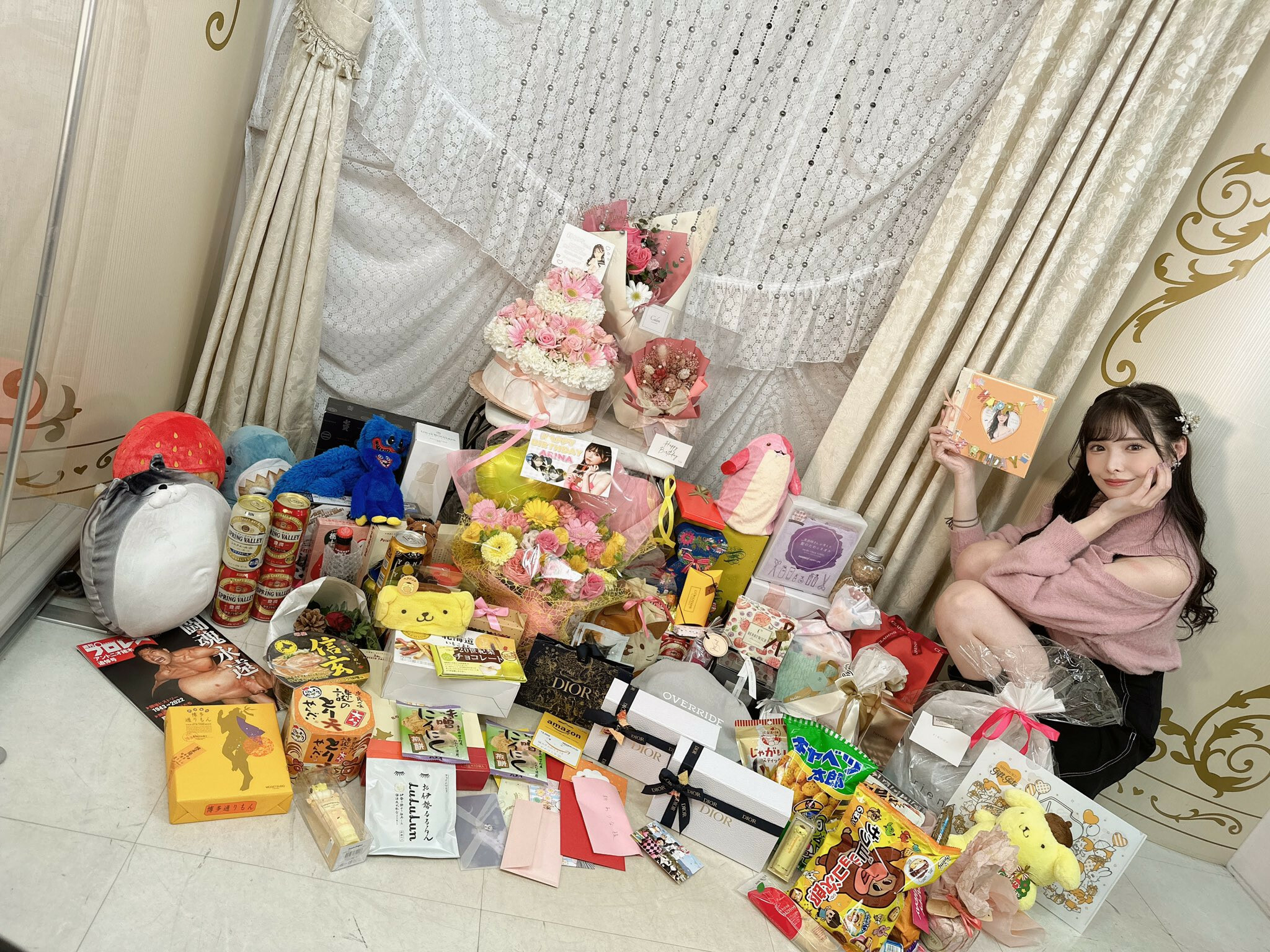 7小時9分鐘的超長活動時間,滿坑滿谷的禮物,這就是新ありな(新有菜)的實力ー為什麼女優的活動要分成限額的見面會和不限額的即賣會呢?除了玩法不同外也是因為實力有所高低,像不限名額的即賣會要的就是人氣一級棒的高手高手高高手,之前七沢みあ(七澤米亞)就是用即賣會創下最多參加人次的紀錄: