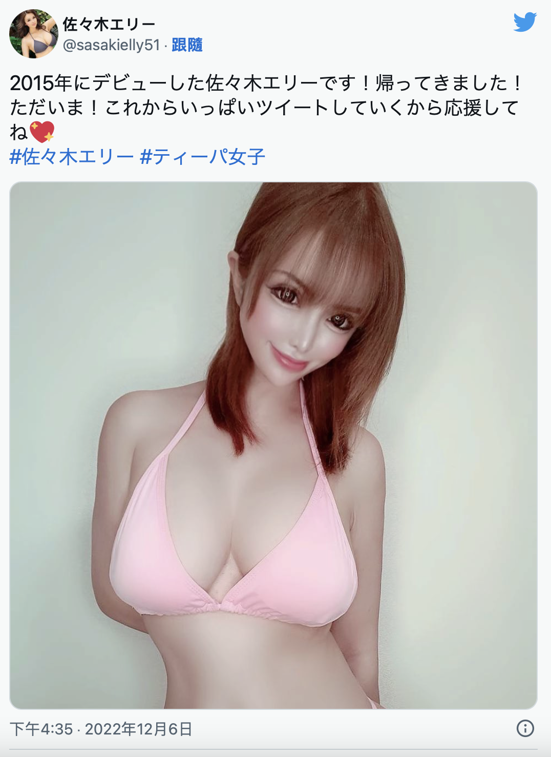 是的,沒錯,佐々木エリー(佐佐木艾麗)復活了!