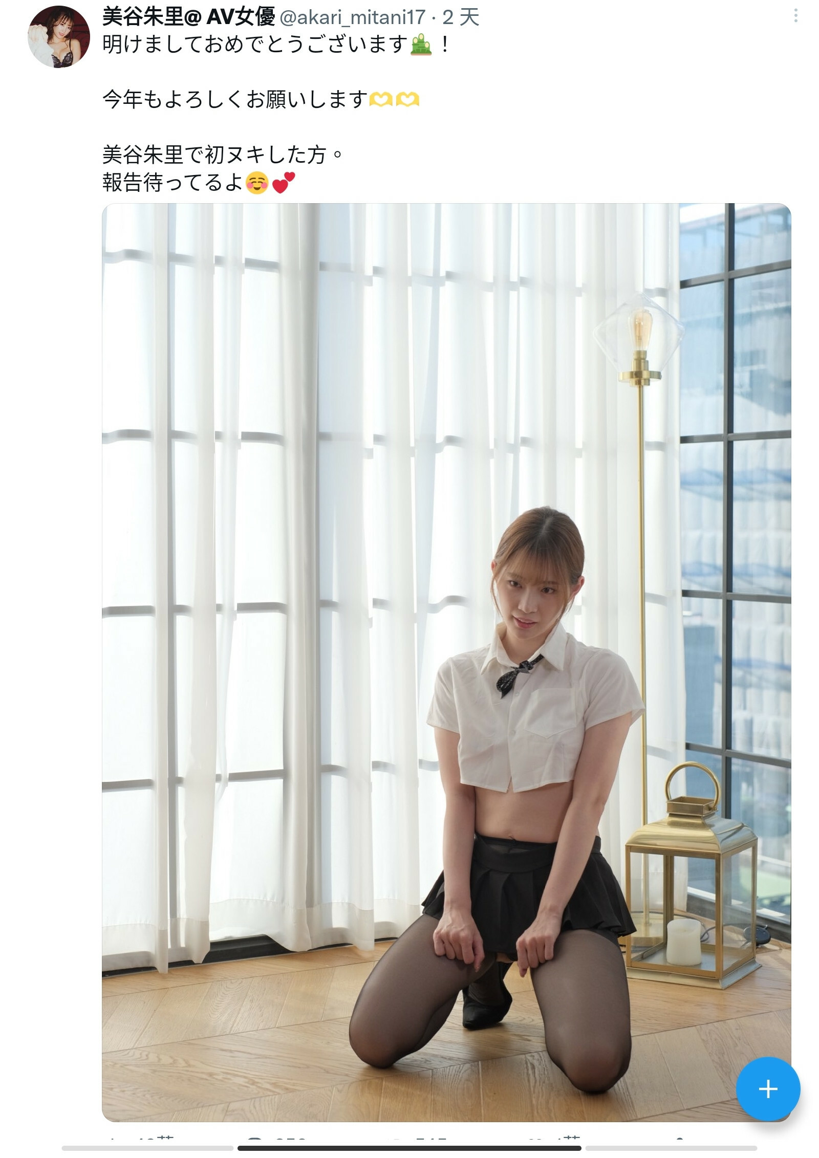 何以見得?從社群就知道了,首先,美谷朱里取消追蹤了Cruse Group的官方twitter;再來,她在1月1日祝大家新年快樂的發文Cruse Group的官方twitter並沒有轉推,然後Cruse Group官網上的主力女優名單也把她拿掉了⋯其實光這三個狀況就可以判斷美谷朱里和Cruse Group切八斷了,接下來還有第三個狀況: