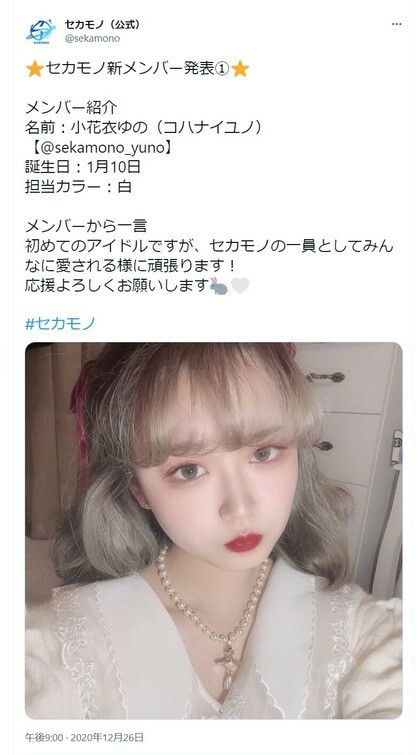 什麼?沒聽過?沒關係,因為我也是最近才知道這個名字,她不是AV女優,而是2020年出道的地下偶像,當時她是在團體「セカモノ」擔任「白」的位置,公布的基本資料是身高160公分,三圍不公開,而到了2021年12月,她以專心課業為由退團,然後ー