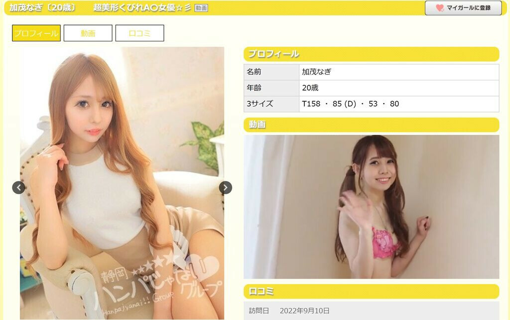 與絕大多數在本中出道的新人一樣,加茂なぎ(加茂凪)在發完出道作後就像自由落體般墜落,後來不只作品很少,也只有一家片商願意再給她一次單獨演出的機會,然後她就像斷了線的風箏一樣飄離AV界轉進風俗界,之前在桜木花道(櫻木花道)的故鄉神奈川做外送妹,只要安西教練想亂來就可以Call她再摳她〜