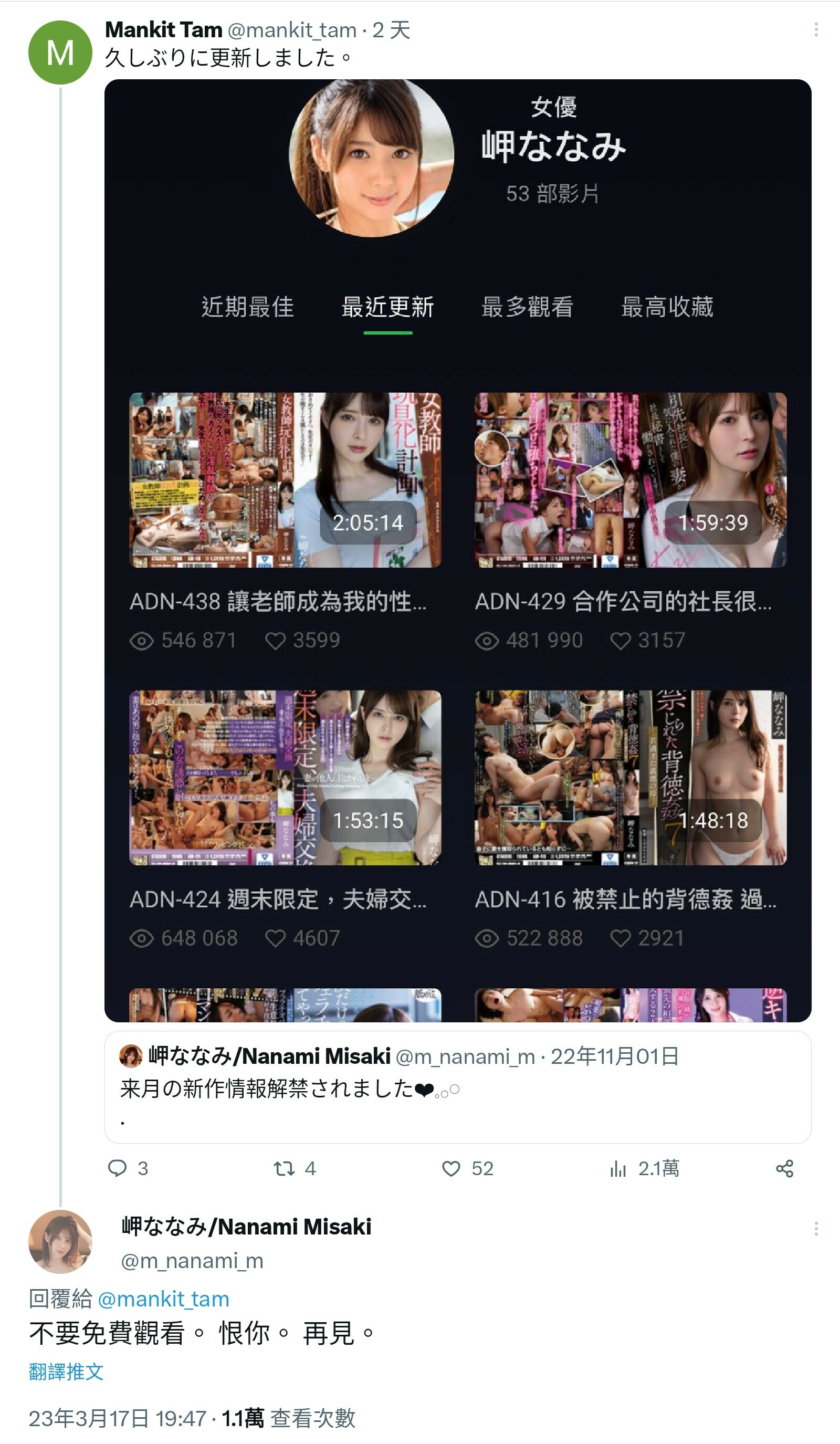 所以拜託,不論你多麼喜歡或多麼討厭一個女優,都不要用這種方式去支持或攻擊她,岬ななみ(岬奈奈美)是性情中人,直接就火冒三丈留言幹譙,相信我,其他女優也和她是一樣的想法〜