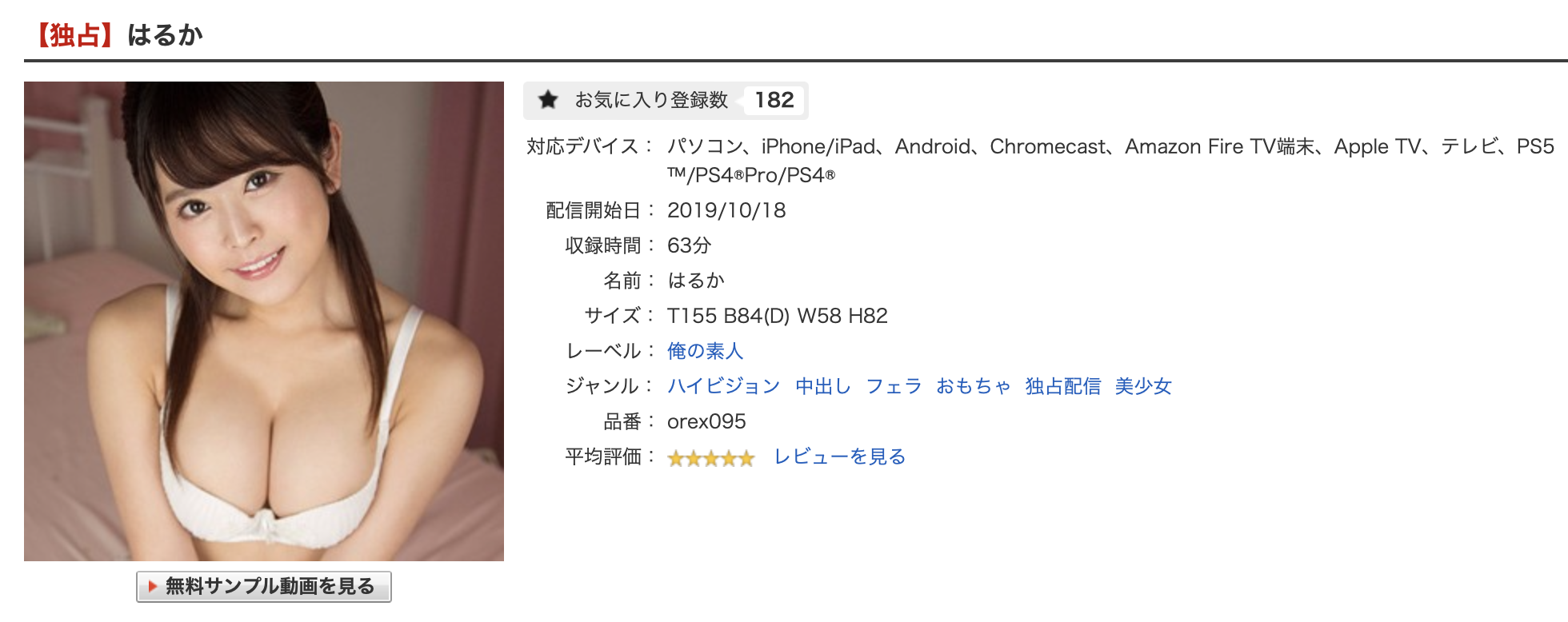 怎麼證明呢?當然是要做特徵的比對,我們用2019年10月的作品「俺の素人 はるか T155 B84(D) W58 H82」(OREX-095)來說明吧:其實光看封面照就知道有碼的西野春香可以和無碼片商的りおん(莉音)畫上等號了,然後,除了嘴唇上的那顆痣外,胸前那顆痣也對上了⋯