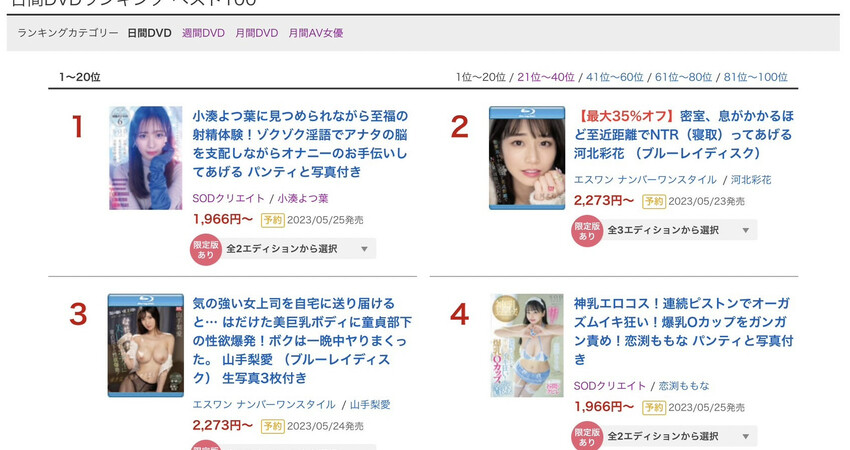 再加上於本週排行榜分居一二名,看來日後的AV界就是河北和小湊的銷售天后之爭了;不過很有趣地,雖然雙方在銷售排行榜打得火熱,但兩位女優的新片玩法差不多,重點就是三個字: