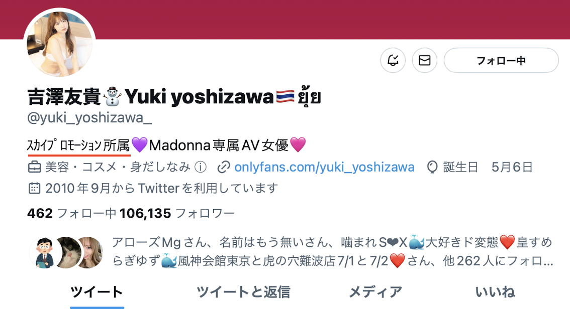 所以曾經手握深田えいみ(深田詠美)、相沢みなみ(相澤南)以及東雲みれい(東雲美玲)這些女優的業界強權現在是實際停止運作了,現在除了日向なつ(日向夏)還掛著原先的招牌其他的成員不是跳槽就是引退;至於重回戰場的吉澤友貴又面臨了什麼狀況呢?首先,我覺得讓她成為Madonna的專屬女優真是傑出的一手,一來是吉澤友貴的年紀到了(30歲),二來以她的資歷和之前於恵比寿マスカッツ(惠比壽麝香葡萄)累積的名氣,去不成三大(S1,Moodyz及IP社)那也要去一家不錯的片商,Madonna身為熟女界的頂峰,是蠻適合吉澤友貴的: