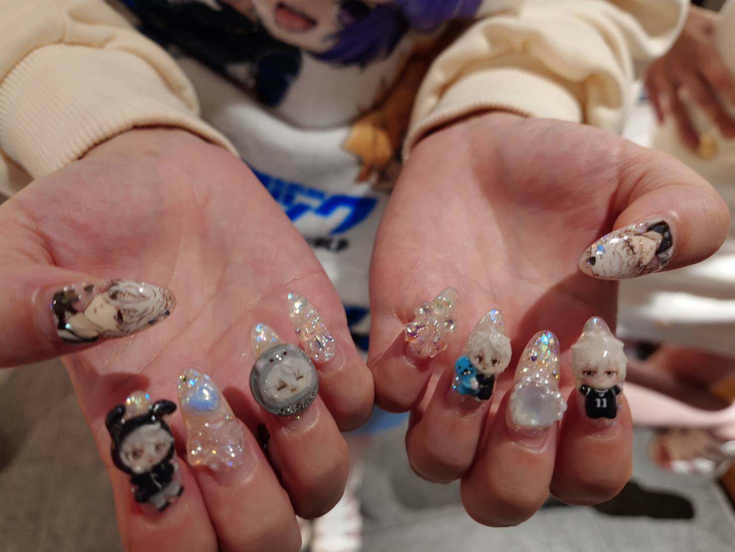 所以趁著活動結束時我找上門,請她秀一下指甲彩繪,結果上面是一堆足球熱血男兒的Q版圖案,我馬上就問涼宮琴音:「你是足球迷嗎?」