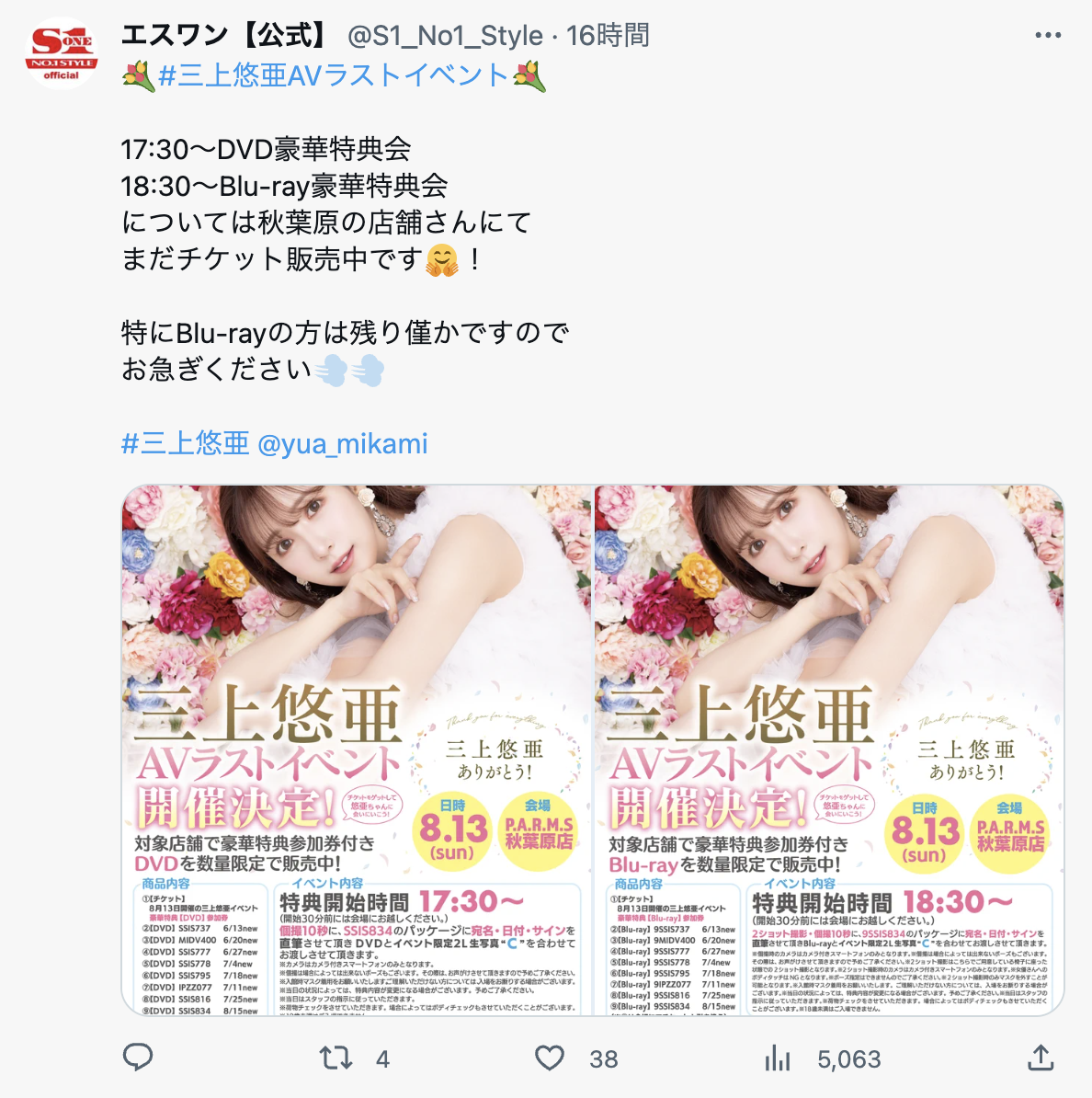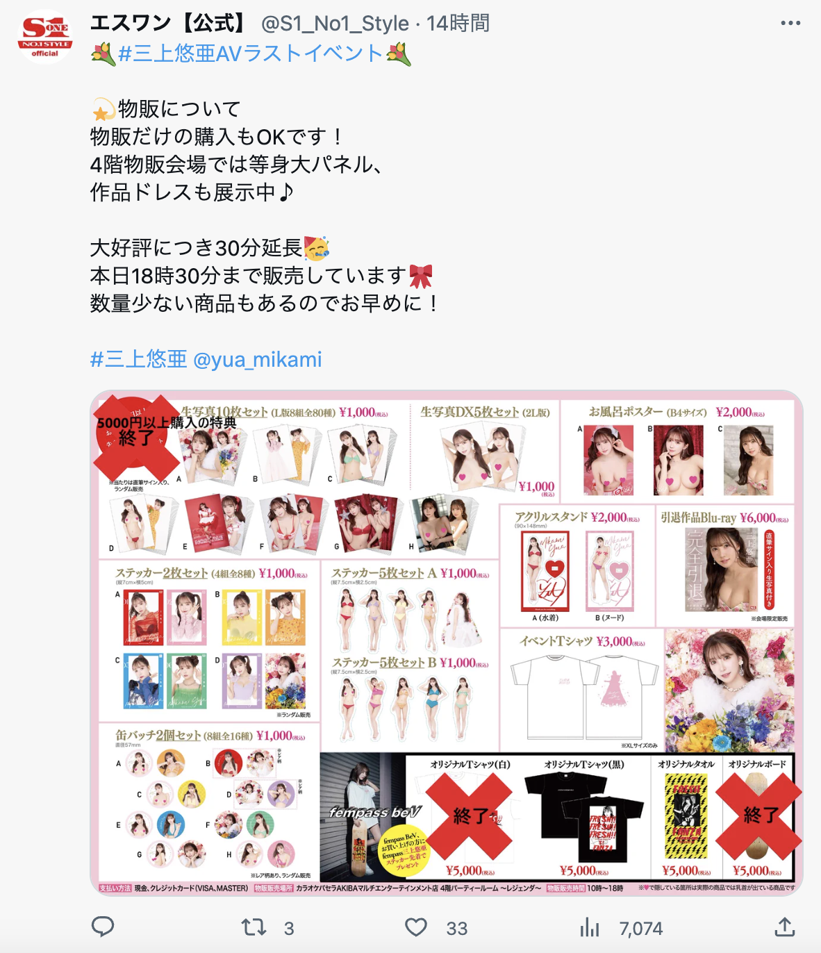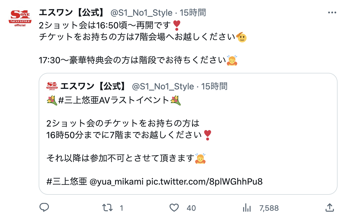 為什麼?可能是門票太貴、可能是福利太少太短也有可能是目前三上主力客群的女粉對這樣的活動不感興趣,但不管怎樣這樣對三上來說絕對是很沒面子的事;不過大家也不用高興(或感慨)得太早,接下來的16日還有一個她自己舉辦的活動,到時我們就知道三上是真的退燒了還是大家覺得引退見面會CP值太低不值得去改去參加她自辦的引退趴踢ー