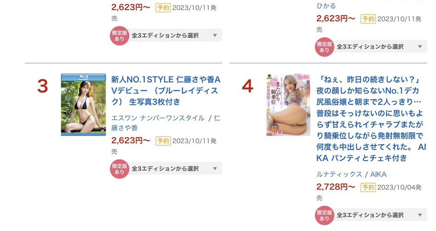 這就是IP社現在最大的問題,不只失去了相沢みなみ(相澤南,引退)、加美杏奈(引退)以及八蜜凛(跳槽),重點是新入團的女優不夠強ー不過還好,雖然新人還要而加油,但IP社的資深女優還是很能打,第一天的銷售榜我們就看到了桜空もも(櫻空桃)排名第6,還是很有活力的: