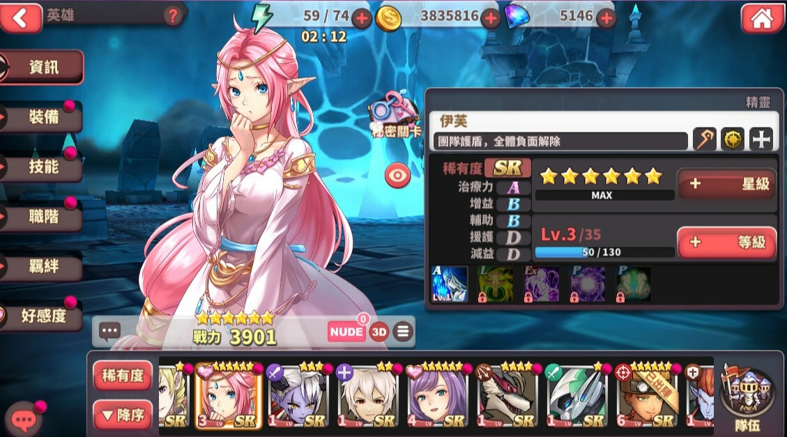 R(銀卡):雖然沒有很強,但不用課金也可以突滿5星,還是有那麼一點用的。