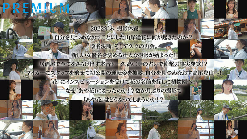 馬上來看這支「改名専属 山岸あや花 再誕、リスタート! 名前探しの旅→休養中禁欲状態からお久しぶりの中出しセックス!5時間SP」,看了標題就知道這支作品的重點有二,首先自然是她改名字了,我們都知道那是因為她從原本的經紀公司Cruse Group移籍去了リスタープロ(ListarPro),原本的藝名不能用了,不過在片子裡當然不會解釋這麼多,所以片商是安排她去算命、去戶外走一走讓心情放鬆,在最舒服的狀態下選出自己最喜歡的名字: