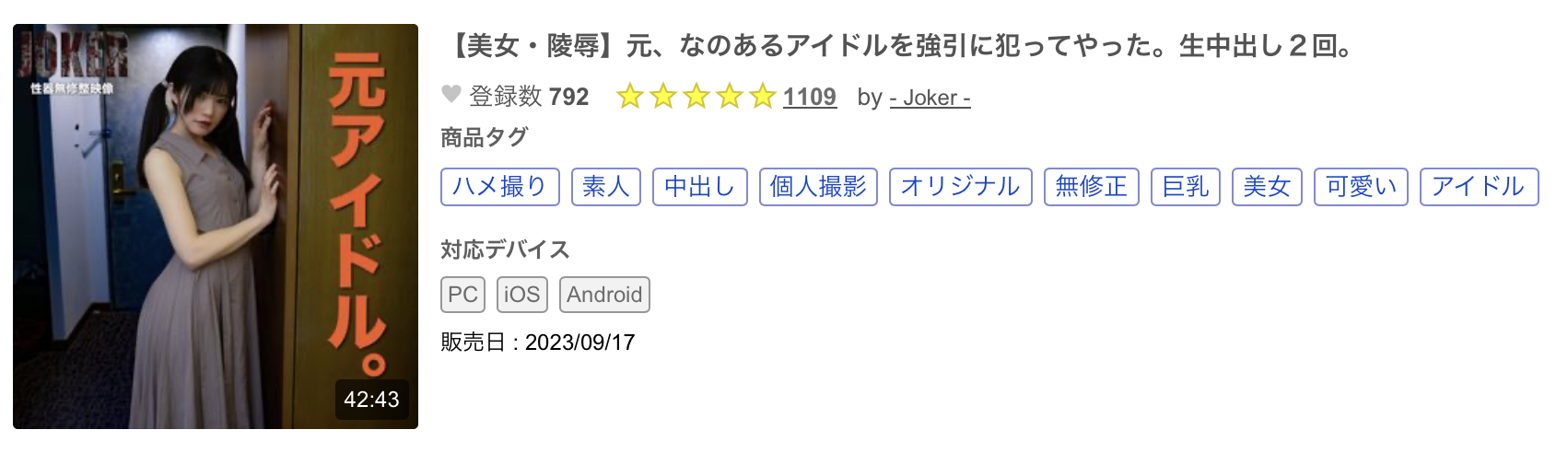 是的,又是FC2無碼賣家的傑作,車牌是「fc2-ppv-3798238」,片名是「【美女・陵辱】元、なのあるアイドルを強引に犯ってやった。生中出し2回。」:是的,如果你略懂日文的話,一定會看到アイドル(偶像)這個關鍵字,怎麼樣?你下半身的海綿寶寶有沒有感受到神秘的力量?有沒有長大成為30公分好棒棒?