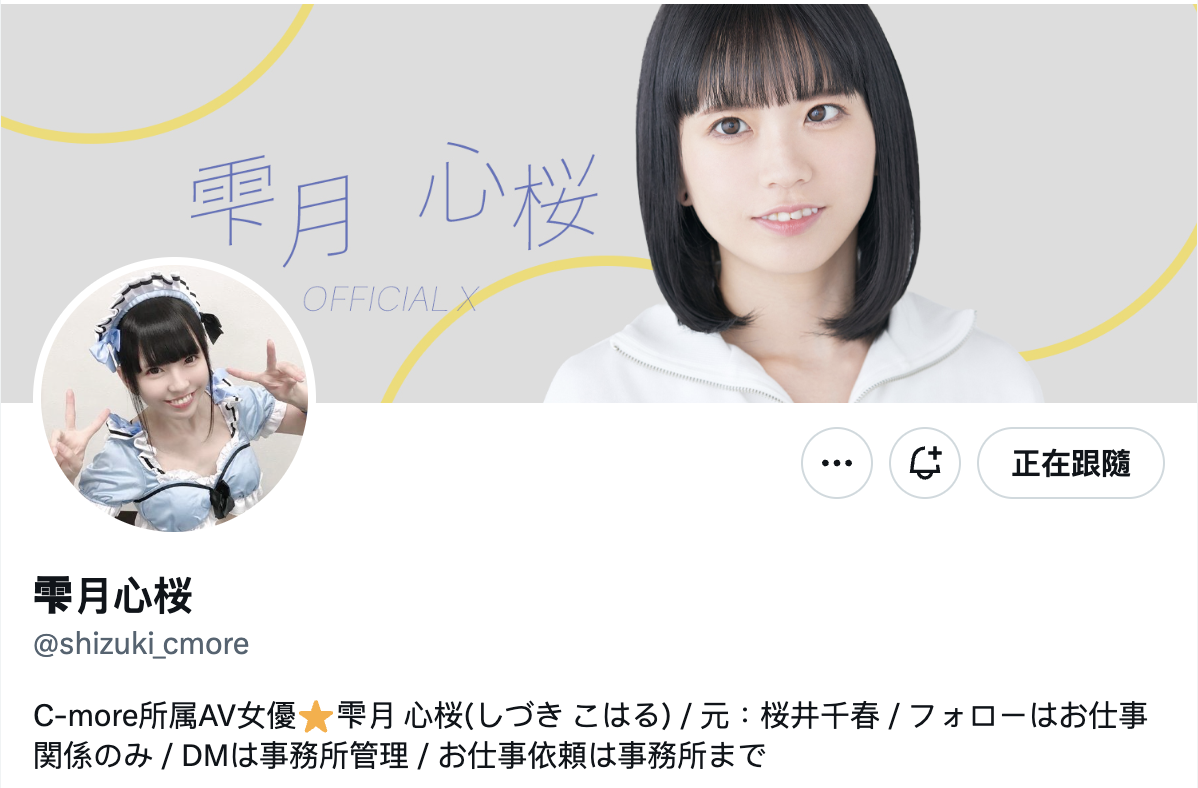如果是的話那就對了,因為雫月心桜的名字是新的,但這位女優是老朋友了ー不過這次不用比對臉蛋五官及身體特徵,因為她自己就在X(twitter)上公布答案了: