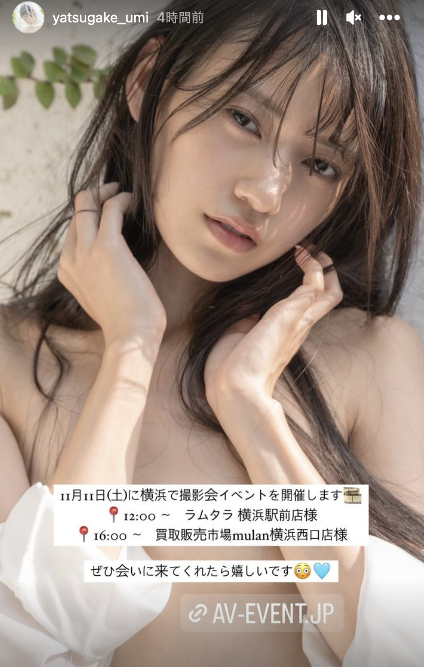 11月4日是2024月曆的發售紀念會(東京秋葉原)、11月5日是Presstige潮牌的見面會(大阪)、11月11日有兩場攝影會(横浜)、12月16日要參與蚊香社女優總動員的見面會(東京秋葉原)⋯我們都知道頂級AV女優工作很多,但像蚊香社帝國雙璧涼森れむ(涼森玲夢)和八掛うみ(八掛海)工作那麼多的還真不多見ー我想除了蚊香社特別操之外,涼森和八掛也真是配合度很高的好孩子⋯