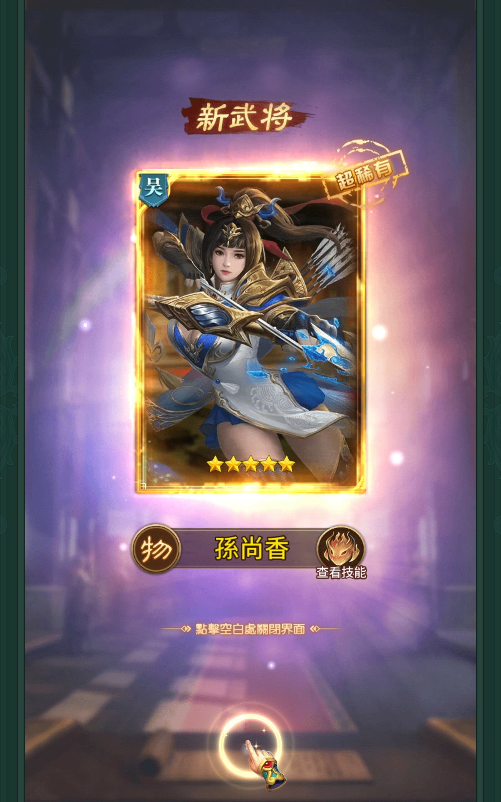 然後就開始打架了,淫遊三國就是很一般的掛機遊戲,你一個人不夠就要多找幾個人打架,每天都可以一般抽獎有機會有也可以大抽一把,然後我就得到了孫尚香: