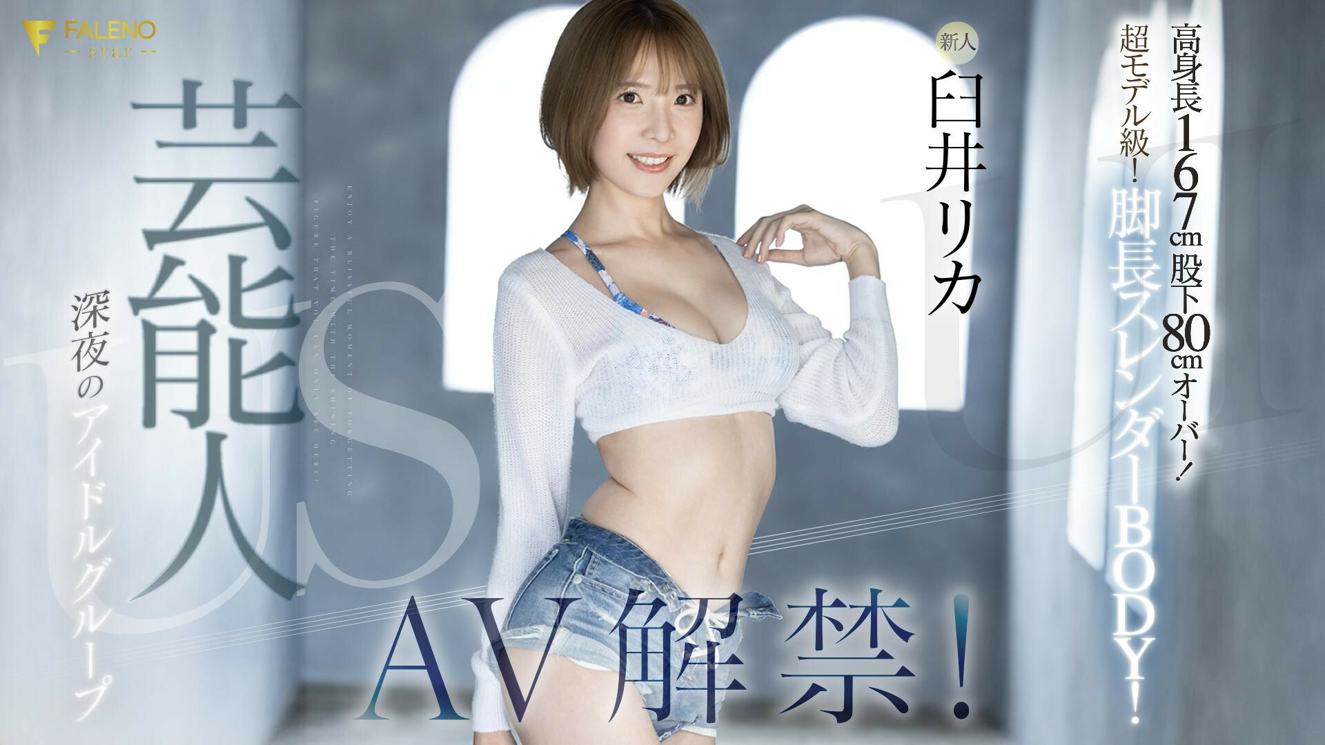 然後Faleno Star接著情報解禁,新人女優「臼井リカ(臼井理佳)」正式現身,根據片商提供的資資料,她是來自深夜のアイドルグループ的藝能人(深夜偶像團體的藝能人),身高有167公分,是超モデル級的Body(超模特兒級的Body)〜