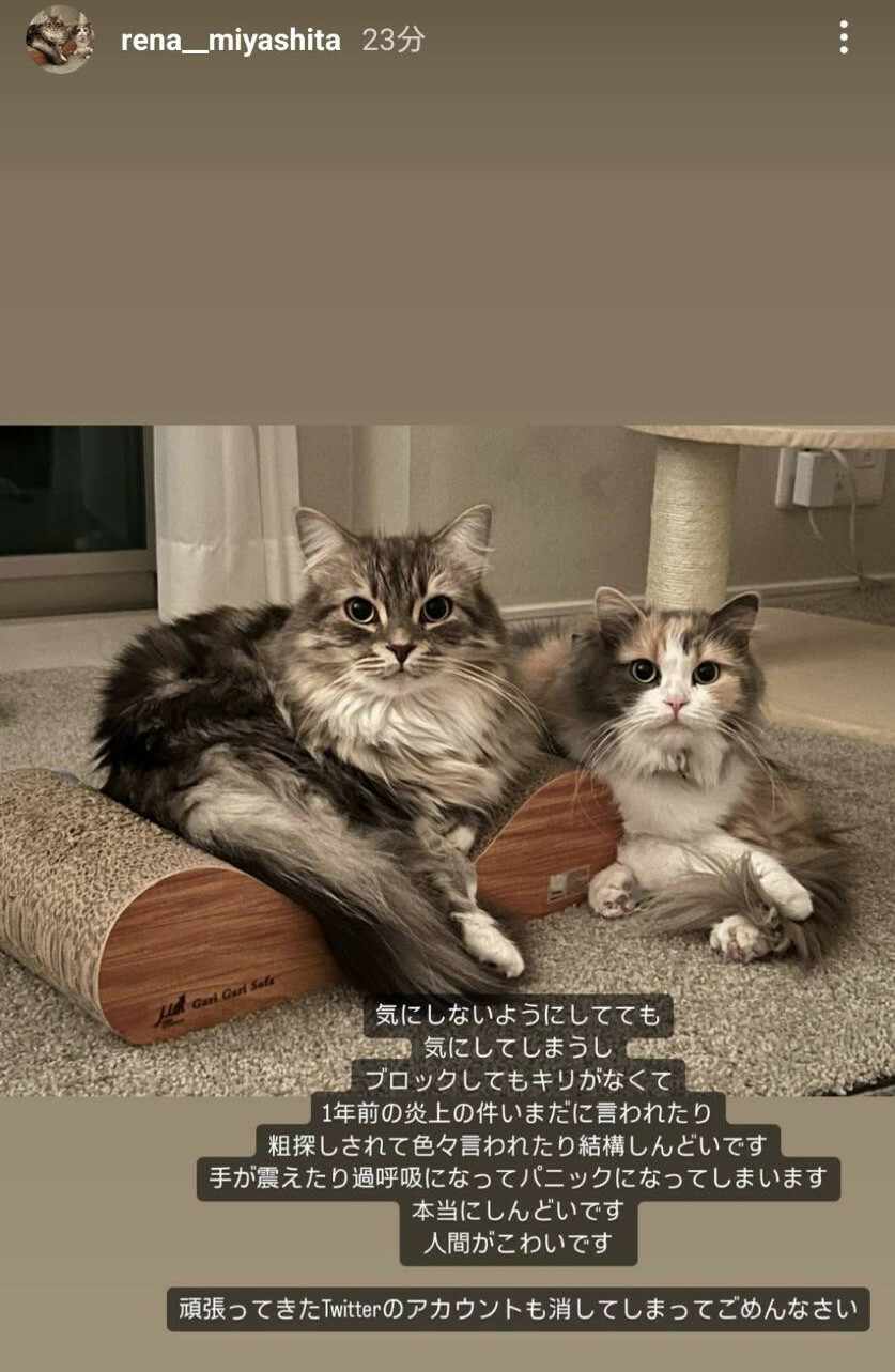因為自從成為Moodyz的新生代美少女雙箭頭後(另一位自然是石川澪了),宮下玲奈已經不只一次和酸民戰到自己遍體鱗傷:7月,有人說她很醜,於是她把IG發文整個刪光只留下貓咪的照片;10月,又有人嫌她瘋狂發文有夠吵,結果人在韓國的她氣到呼吸過度倒在路邊,不但暫停發文了好一陣子也是大刪文章,只留下與廠商合作的發文並且從此不再按粉絲的讚;上個月(2023/12),因為被人家說美美的照片是合成出來的有夠恐怖,她憤而封鎖對方但是又把相關的文章刪除了⋯