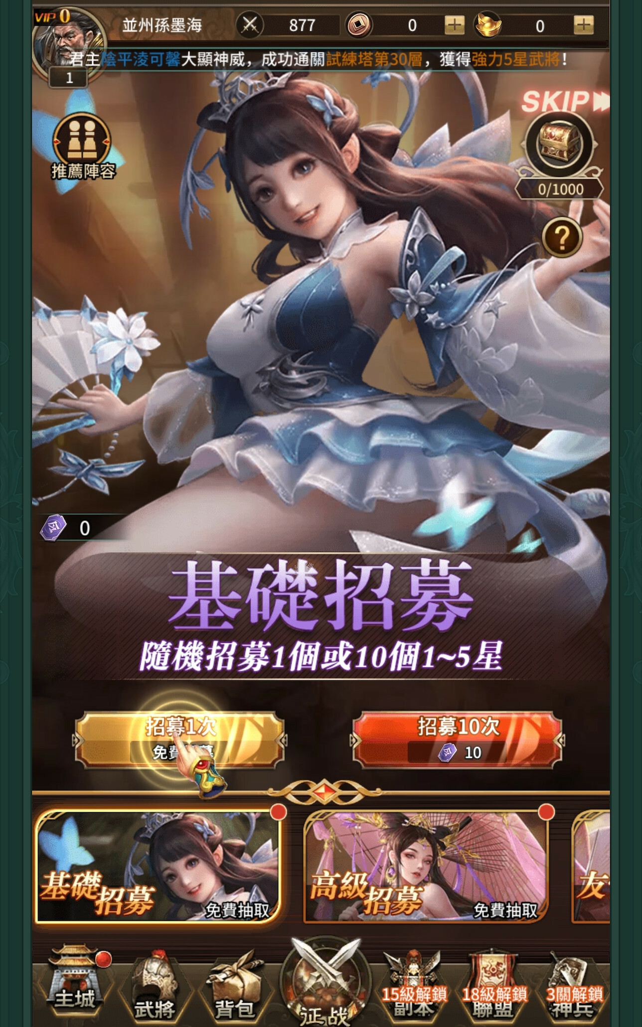 然後就開始打架了,淫遊三國就是很一般的掛機遊戲,你一個人不夠就要多找幾個人打架,每天都可以一般抽獎有機會有也可以大抽一把,然後我就得到了孫尚香: