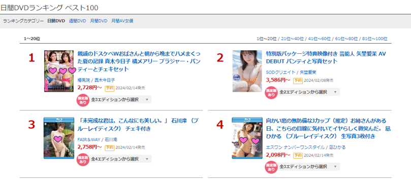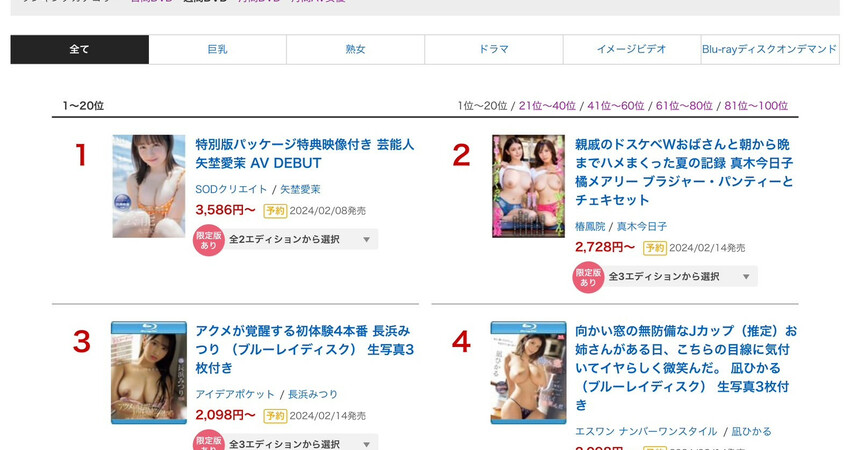 所以這幾個月我花了很多時間來講現在實體片銷售排行榜的有趣之處,如果你是第一次看到這篇文的話容我再為大家整理一遍:首先,FANZA的實體排行榜雖然是從1排到100,但因為現在會購買實體片的人愈來愈少(就是如X上那位業界の人所說的大概500片以內),所以實際上大家相差的片數很少,千萬不要以為第一名和第一百名相差五六千片,沒有這麼誇張;再來,因為買實體片的人不多,所以現在要讓粉絲掏錢買片全靠特典,而擁有不可複製性然後世上獨一無二的拍立得最為搶手,再加上女優內衣褲那更是殺傷力十足,連藝能人都能贏!
