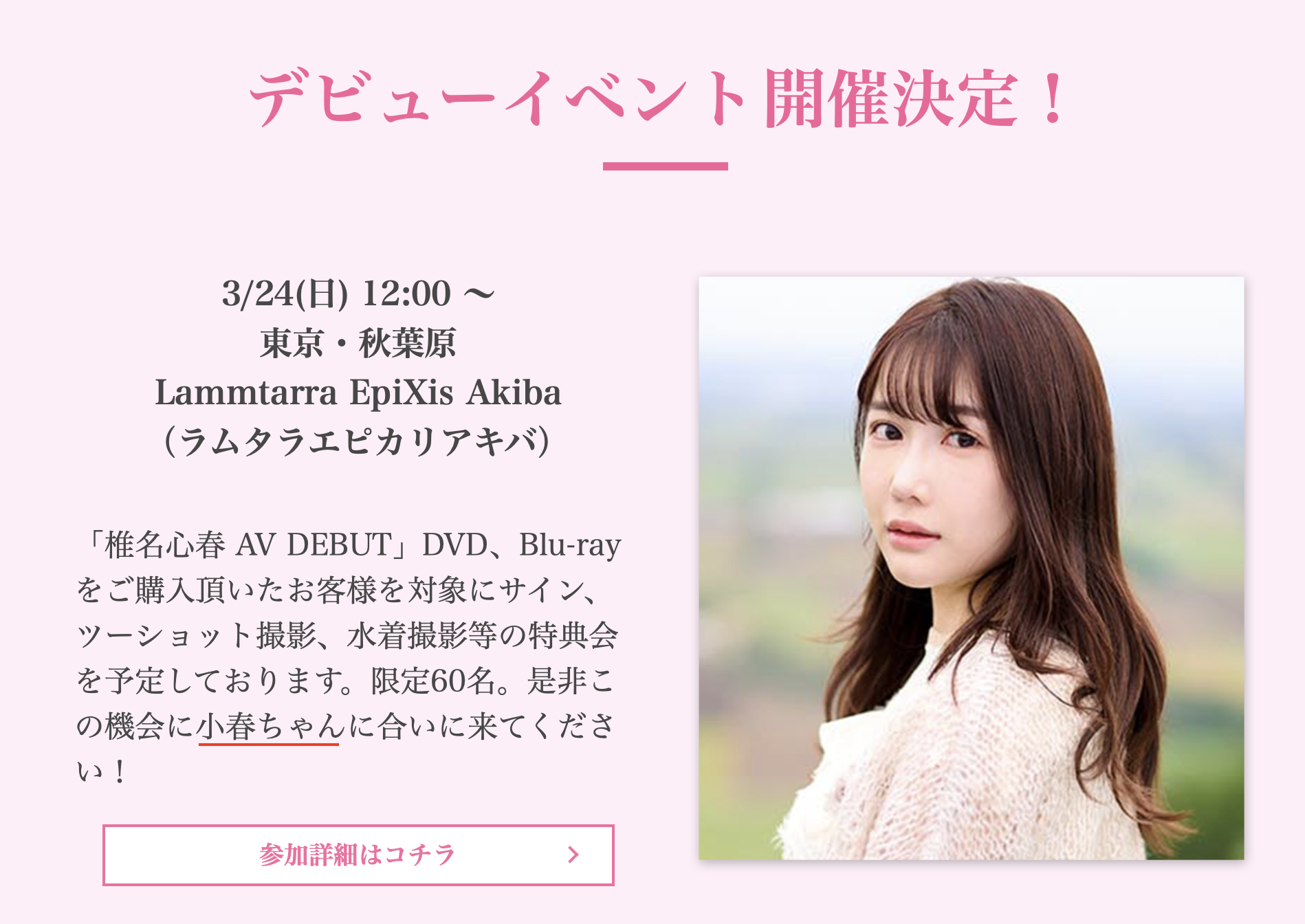 為什麼我會覺得SOD STAR在吊大家胃口呢?因為除了劇照和宣傳影片都沒有外她什麼都有了,你可以馬上追蹤她的X(https://twitter.com/ShiinaKoharu)、她也有IG可以找(https://www.instagram.com/shiinakoharu/),就連出道的第一場活動也定好了ー雖然把她名字打錯了,但從SOD STAR的一切做法就知道這是一位準備好了、而且片商也對她超超超超超超級有信心的,敬請期待〜