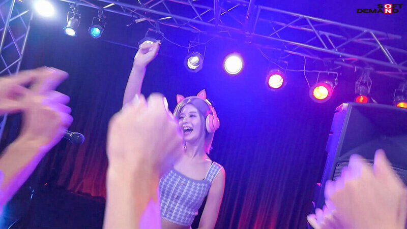 只是我看不太出來就是了。但既然是惡搞DJ SODA,那除了戴上假髮然後模仿她上傳到社群的照片拍幾張劇照外當然在性愛演出上也要有梗,DJ SODA為什麼會SNS(社群)大炎上?因為她在大阪被襲胸嘛,所以拍片的SOD集團就把這段放進片子裡、讓戴著耳機的她在舞台上被大家玩弄爆漿顏射: