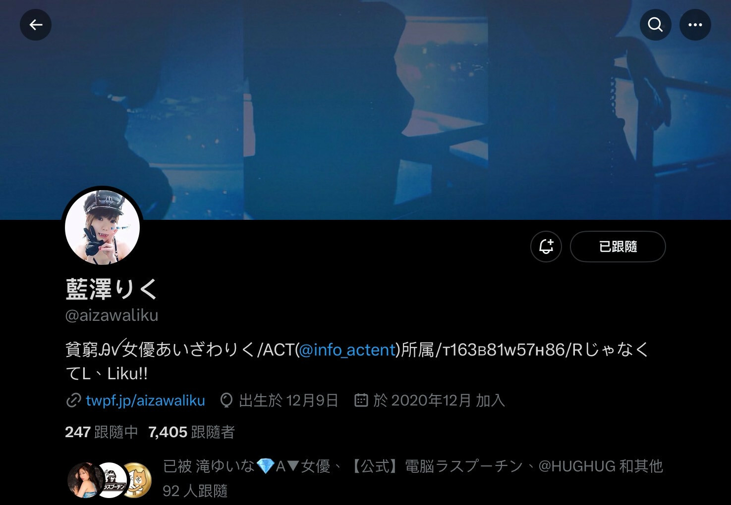 答案是經紀公司ACT所屬的「藍澤りく(藍澤理紅)」,是的,會寫這篇除了是要介紹這支趁你病要你命的作品外也是想介紹藍澤りく(藍澤理紅):大家可以去她的X(https://twitter.com/aizawaliku)瞧瞧,除了強調名字りく的拼音是Liku而不是Riku外她還註明了自己是貧窮AV女優,雖然不知道是不是賭到沒錢,但確實蠻符合這支「賭博女黙示録」設定的因為實在太窮所以只好拍A片任你玩的設定⋯