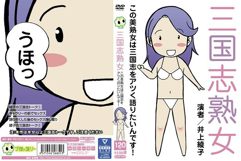 可是怎麼想都很怪吧?這企劃是怎麼出來的?根據文案的說法,原來井上綾子是三國演義的忠實讀者,原著倒背如流的她最喜歡諸葛亮,所以片商就讓她扮成諸葛亮ー而且不只Cosplay喔,在片中還有不少片段聊到其他三國武將,和男優搞得很興奮的井上綾子還口呼「兀突骨」之名,有趣吧?