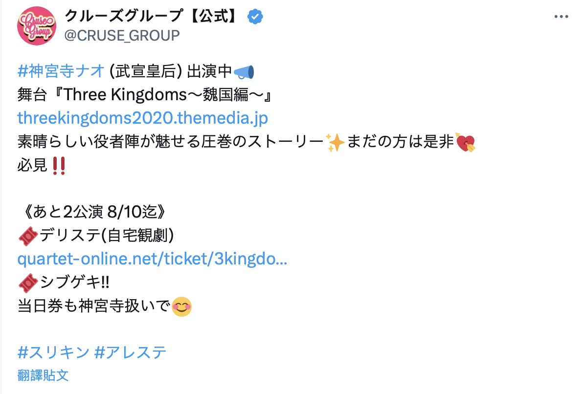 嚴格來說這就是一支叫女優Cosplay諸葛亮的作品,成本不高,大概都丟到井上綾子身上那套服裝了;而且說實在話,看著羽扇綸巾的井上綾子被舔鮑舔得很爽的模樣我是真不適應,只能說這題材實在太特殊了ー不過并上可不是唯一一個和三國志扯上關係的AV女優,AV界的劇情片大師、也是原本要在2020年TRE台北國際成人展和大家見面的「神宮寺ナオ(神宮寺奈緒)」可是在舞台劇上演過三國人物的: