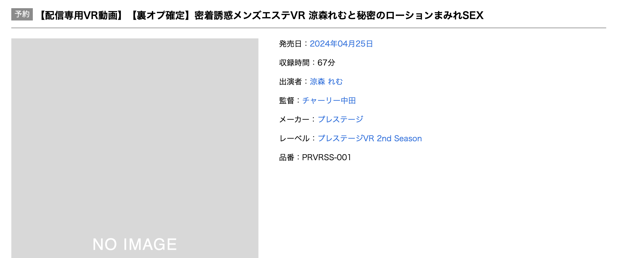 真的等好久了,他們的上一支VR片要追溯到「【VR】舐めて焦らしてたっぷりアナタを癒す!!密着むちむちボディ! 松岡すず M性感セックス」,那是2021年1月的作品了,也就是說這家片商3年沒拍VR片、就連當時演出的女主角「松岡すず(松岡鈴)」也好幾個月沒作品了;而今天,Prestige終於宣布要有新的VR片上市,那就是ー