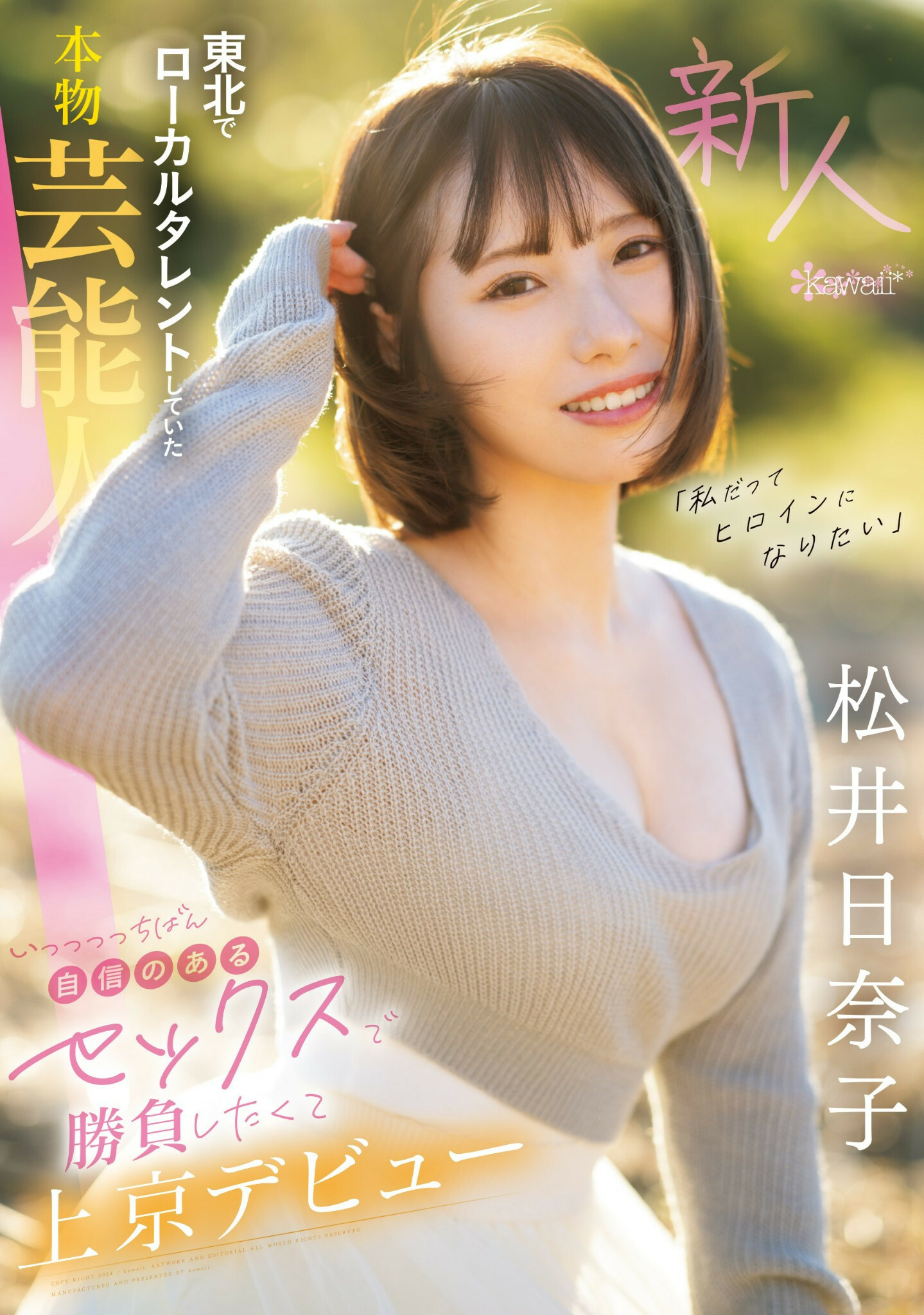 封面上的她巧笑倩兮,渾身上下散發著不同於其他新人的強大氣場,不過到了封底就知道她本人是個不長個子只長奶子的小隻馬ー145公分F罩杯,很多AVer腦袋裡可能已經浮現出一些畫面了,片商可能找來大個子的男優站在她身邊當比例尺告訴大家這位新人有多麼嬌小,然後這位男優把她當玩偶折過來掰過去搞得她吱吱叫讓大家看得心跳加速血壓上升,雖然松井日奈子對自己的床上功夫很有自信,但這畢竟是一場以大欺小的戰爭,勝負似乎很明顯⋯