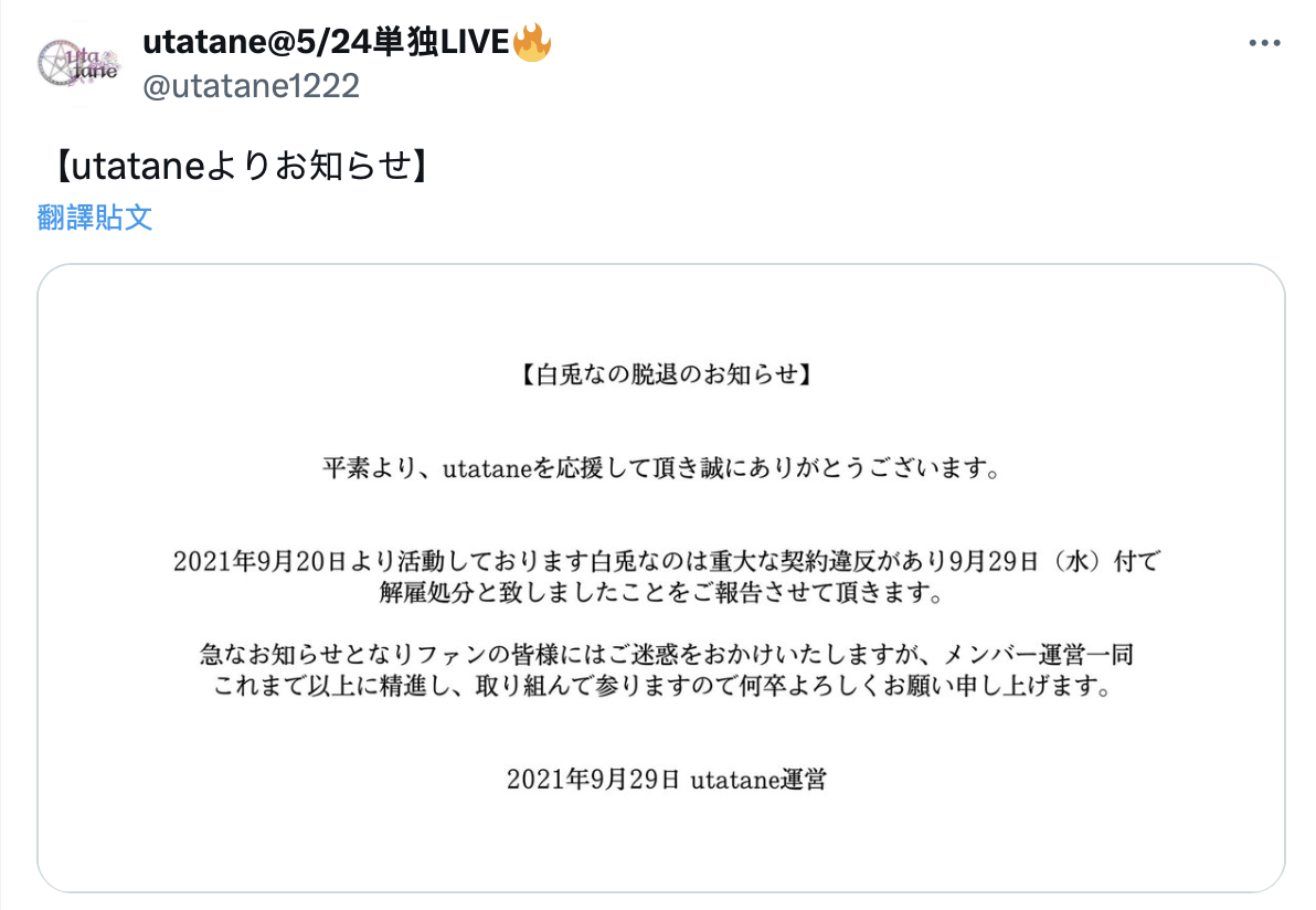 好,我們把時間線理一理,首先,utatane的白兎なの(白兔菜乃)是她第二次做偶像了,她最早是在PEDIOPHOBIA這個已經解釋的偶像團體擔任「吸血鬼紅」的角色ー但這個偶像團體只撐了不到一年的時間就解散,於是沒偶像可做的她就跑去拍了這支FC2-PPV-1720534的無碼片,然後過了半年左右才又加了新的偶像團體也就是在utatane擔任白兎なの(白兔菜乃),接著不知道重大違規了什麼的她就被開除了〜