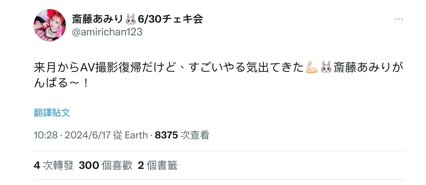 她在自己的X(https://x.com/amirichan123)發文說下個月要回去拍片了,這個意思就是她之前已經離開戰場了,明明是市場最好的地雷妝女子(不是說她很地雷啦),怎麼會脫離戰線?