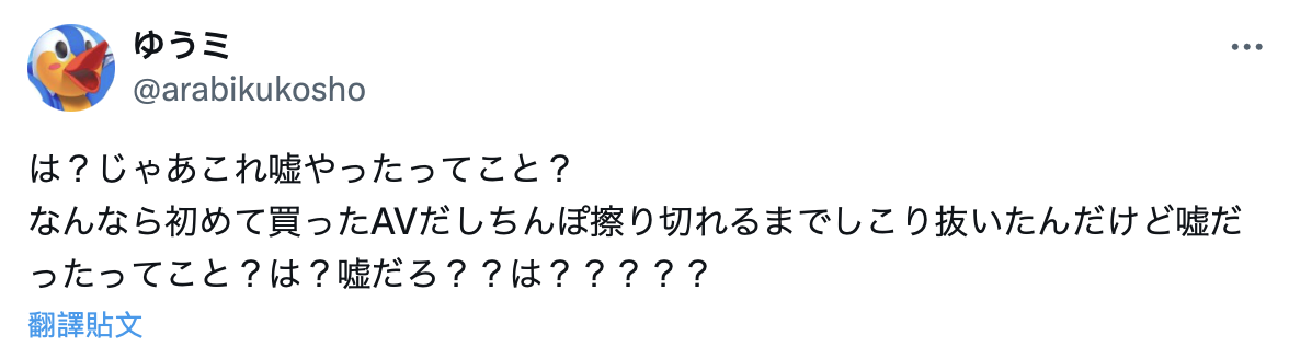 原來是她在這篇文章裡提到過去的事到現在還沒有和親人們說、也就是沒有和家人說自己當過AV女優引發爭議,有位名為「ゆうミ」的網友就在自己X上發文說:「什麼?所以這支作品是騙人的?那可是我買的第一支片子啊,我反覆看了好幾遍還打了好幾槍結果你現在跟我說是假的?是假的?」