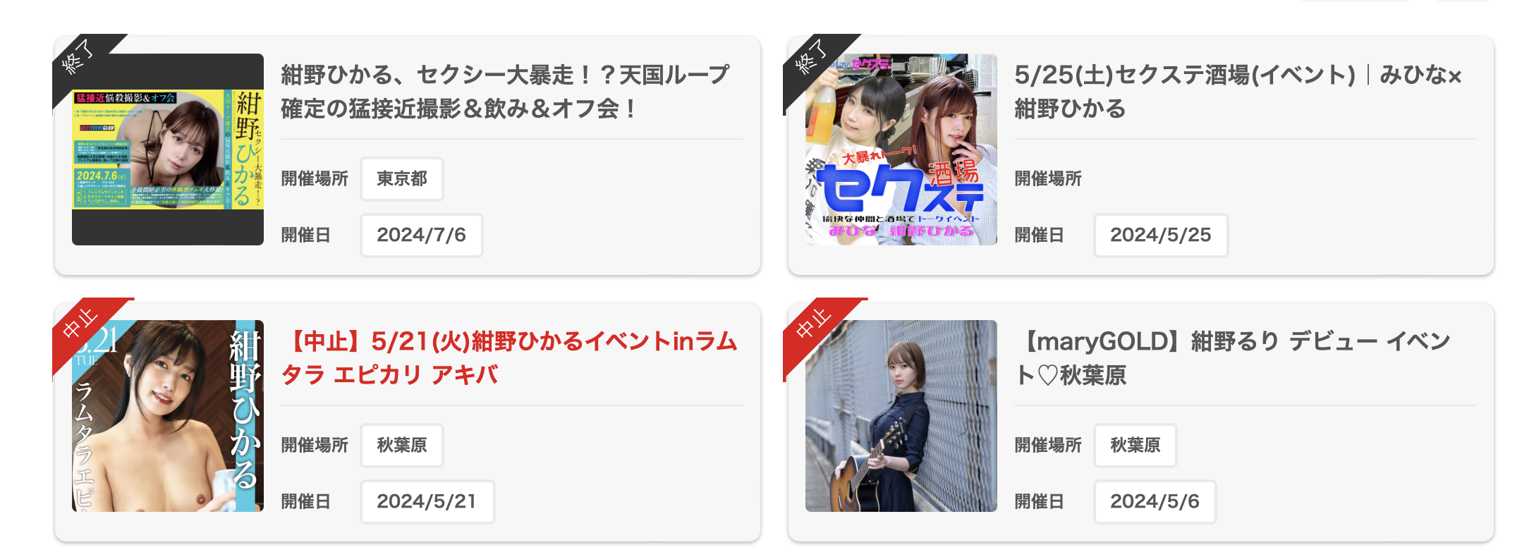 這次有問題的是去年才剛完成出道十週年里程碑的紺野ひかる(紺野光),狀況是她從3月20日之後就再也沒有更新過X(https://x.com/konnohikaru),之後所有的活動都取消了: