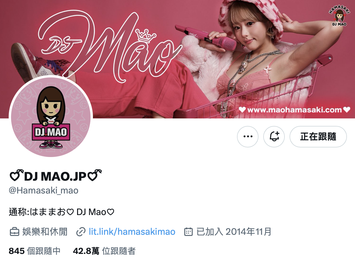 不過話說回來,從她X的名字改成「DJ MAO.JP」大概可以猜到不做AV女優浜崎真緒後她想要幹嘛,另外,她是有海外經紀人的,就算不做AV女優應該也會在各種娛樂場合看到她賣力工作,我甚至覺得「不來TRE」這話說的有點早,以她的身材以及熱情開放的互動能力,廠商應該都很歡迎的⋯