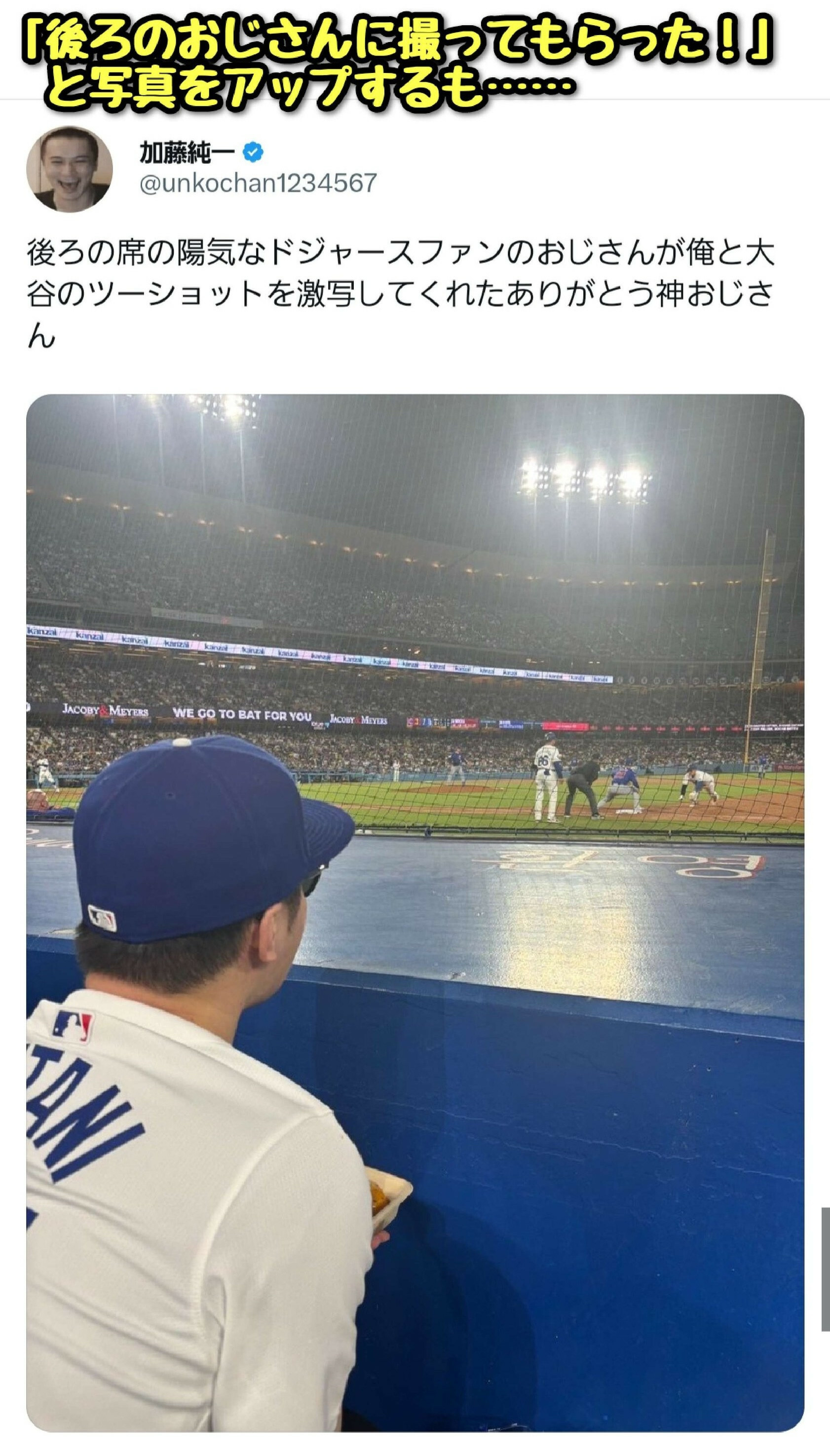 是的,加藤純一已婚,事情會爆發是因為流量網紅「滝沢ガレソ」在社群爆料,宣稱一個人去美國看大谷翔平球賽的加藤純一去了迪士尼然後直播也少很多,不太像是自己一個人出國旅行;更扯的是在看道奇隊比賽的時候他被拍到旁邊有個短髮正妹,雖然沒有很Close的畫面但一下子就被認出那是AV女優「本鄉愛」: