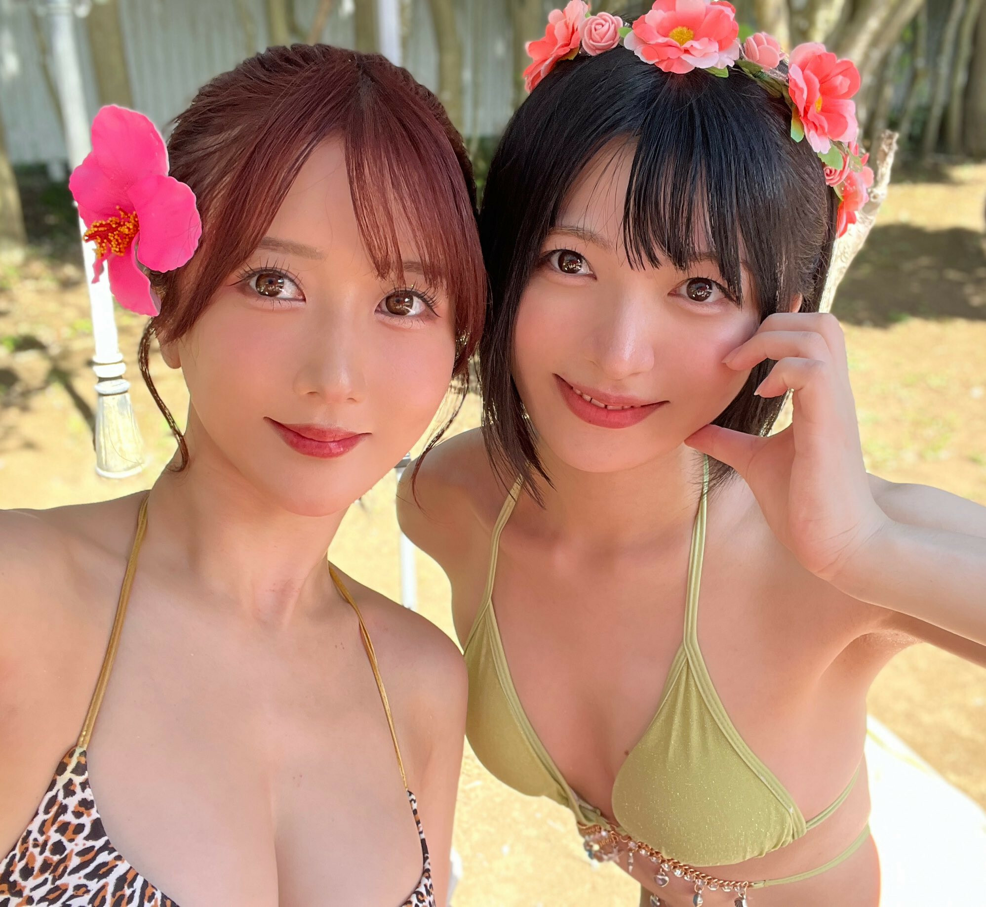 一連兩篇,有穿著泳裝也有穿著學生服的模樣發文,重點是她很明顯地在拍共演ー請大家看看,那張照片被我圈起來的那位女優是不是香水じゅん(香水純)?