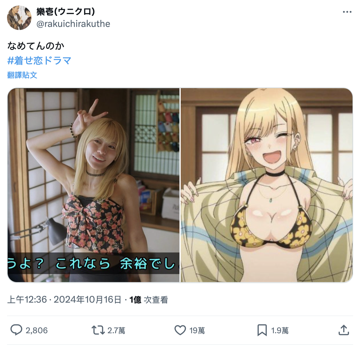 寫到這邊你大概就知道了,沒錯,逢見リカ(逢見梨花)演出的這次作品也是改編自「その着せ替え人形は恋をする(愛上換裝娃娃)」(DVRT-006),當然,劇情一定會讓飾演五条新菜的暗黑翔平「藍井優太」下半身炸裂狂抽猛送逢見リカ(逢見梨花),不過看看劇照、看看一樣丈量尺寸的名場景,也難怪在日本X出現「AVの方」趨勢的同時,日本鄉民是這麼說的: