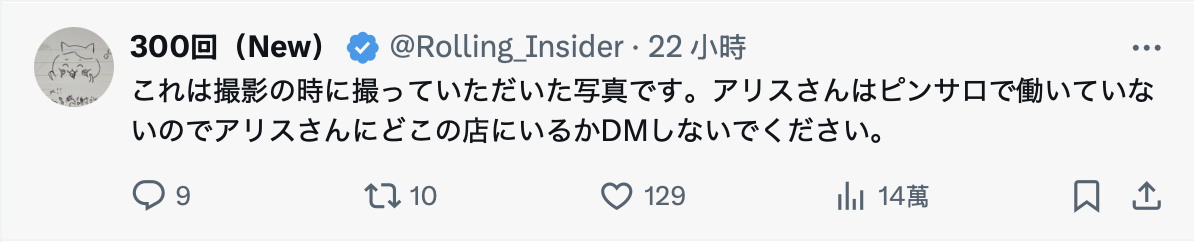 如果是真的去了風俗店的話,那七瀬アリス(七瀨愛麗絲)肯定潮爽der,生意做不完惹,偏偏這是拍攝作品的現場照ー所以當拍完片子、累得要死的七瀬アリス(七瀨愛麗絲)回家看到自己的私訊被塞爆問是去了那間風俗店上班時她氣炸了,所以她發文這麼說: