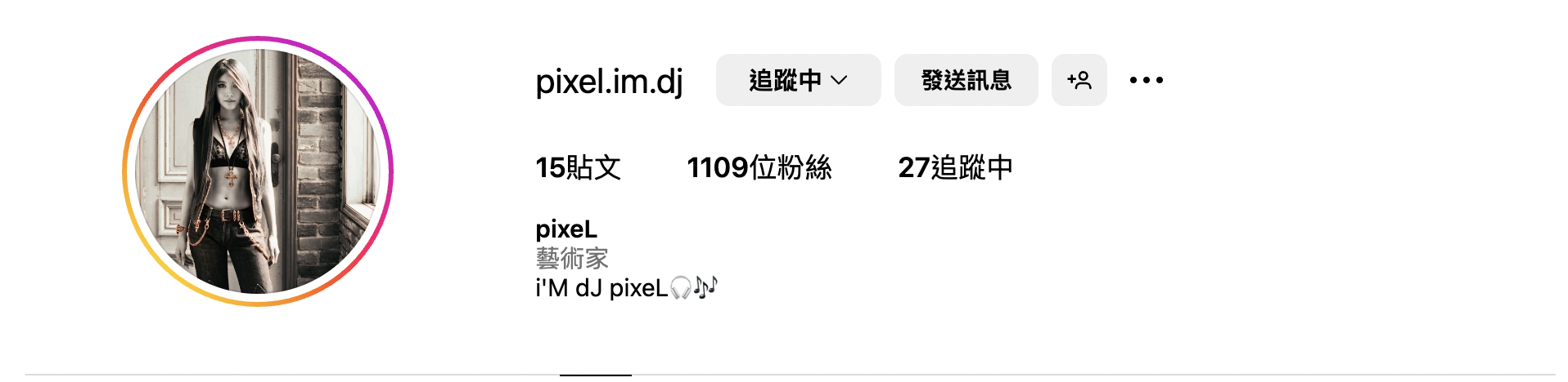 首先,請大家追蹤這個帳號(https://www.instagram.com/pixel.im.dj),這就是Pixy要和大家宣布的大事:她要當DJ了,藝名是Pixel(皮克索),和Google手機同一個名字,當然,你也可以叫她Pixy,然後2025年1月11日,她的原創歌曲CD即將發售,串流平台也會同步上線,這張照片就是她的專輯封面⋯