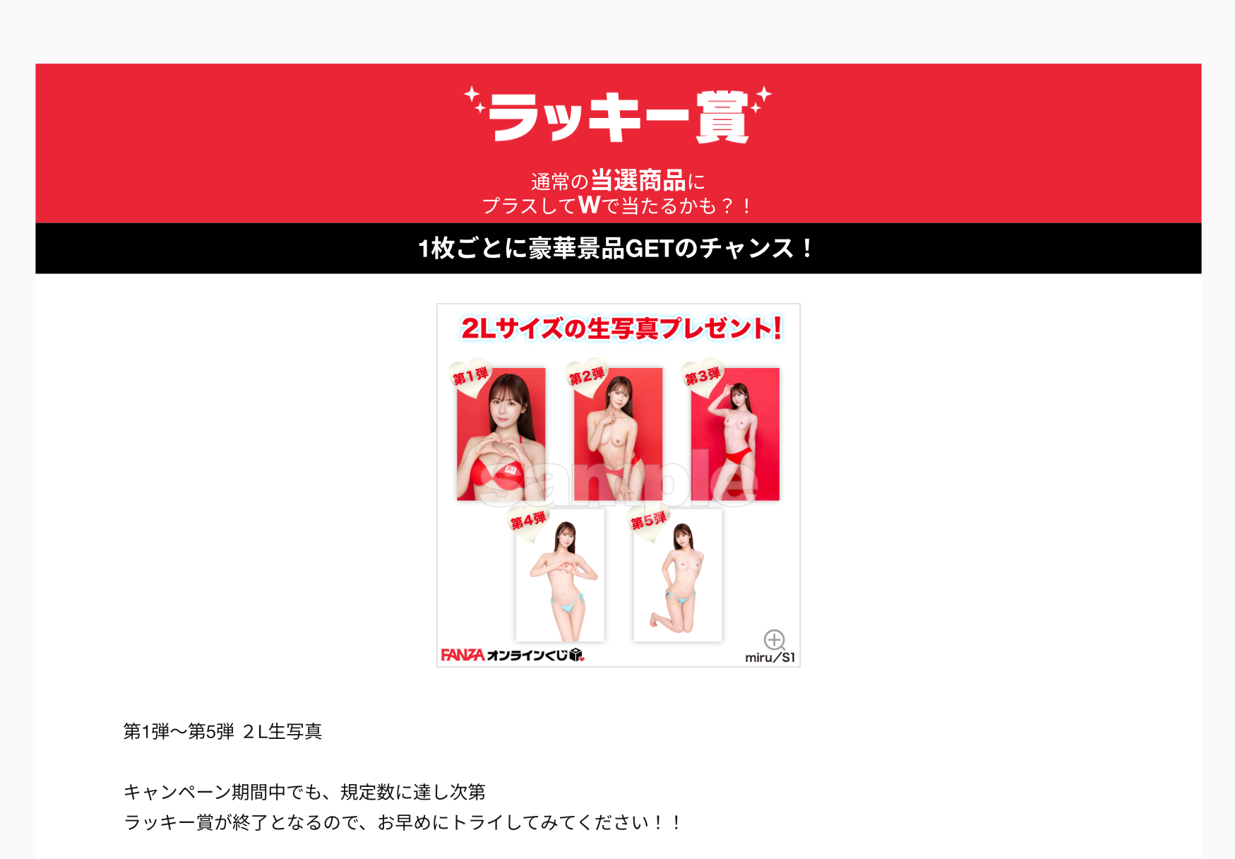 當然少不了作品的優惠以及原創商品的販售(目前只有生写真),也有女優貼身衣物的競標以及線上一番賞的設計,當然,安排女優去線上聊天室和大家講色色的事情也是一定要的,然後就是寫真集的販售了: