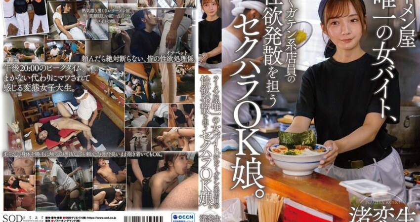 ラーメン屋唯一の女バイト、汗だくガテン系店員の性欲発散を担うセクハラOK娘。 渚恋生