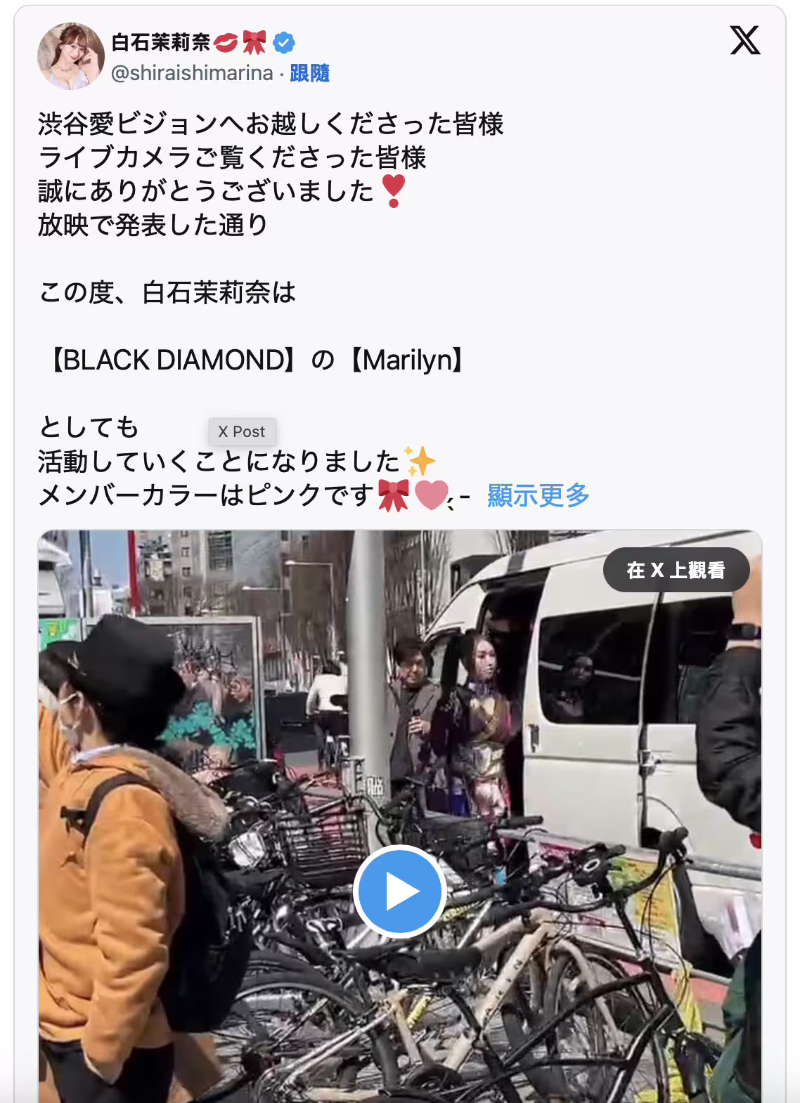 業界知名的媽媽女優「白石茉莉奈」今天是在社群上宣布,將會加入Black Diamond、以Marilyn的名字展開活動;而且就沖田杏莉的說法,白石媽媽之前已經和他們一起練習了一年的時間,今天終於確定升格成為正式成員,代表的顏色是「粉紅」~